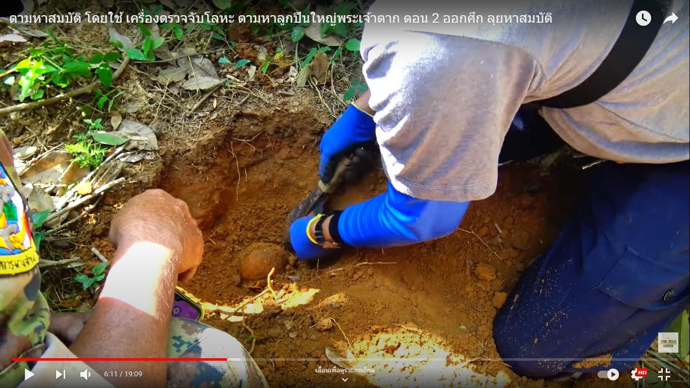 แต่มันไม่หมูครับ ดินอุดมไปด้วยแร่เหล็ก กว่านักล่าจะปรับตัว ปรับเครื่องตรวจจับโลหะให้เหมาะกับสถานที่ที่เต็มไปด้วยกลิ่นอายแห่งประวัติศาสตร์แห่งนี้ ก็กินเวลาไปหลายชั่วโมง และเราก็เจอลูกปืนใหญ่ที่ตามหาจริงๆ ครับ ลูกแรกขึ้นจากดินหลังจากที่มันอยู่ในดินมาหลายร้อยปี
