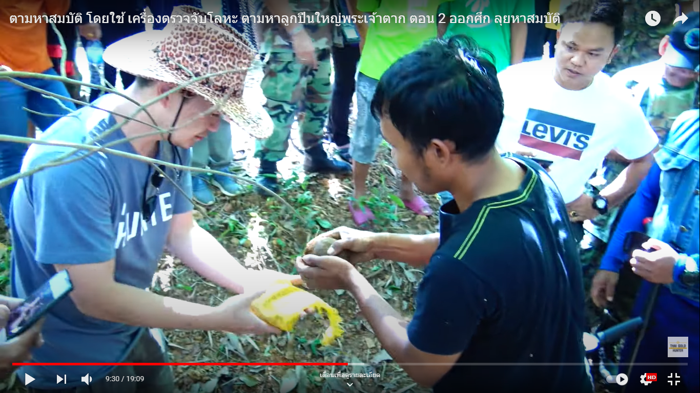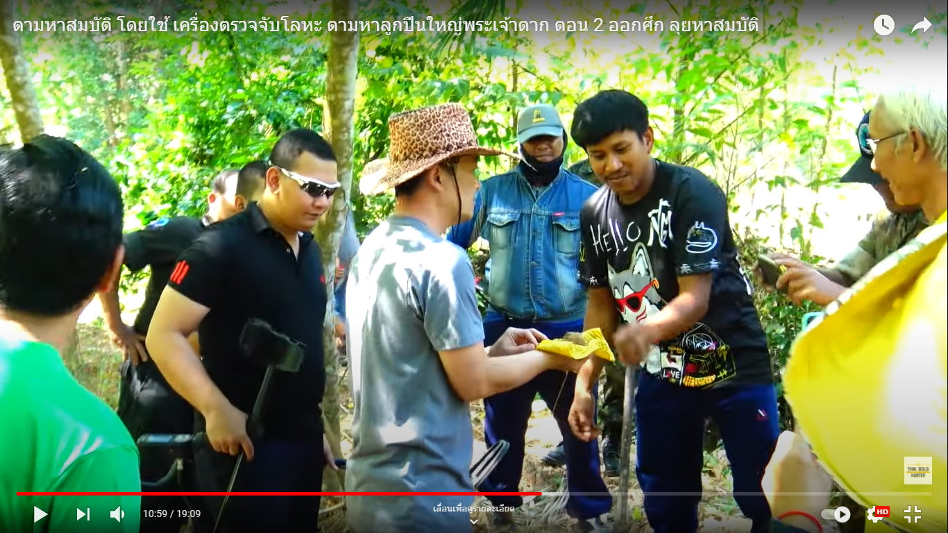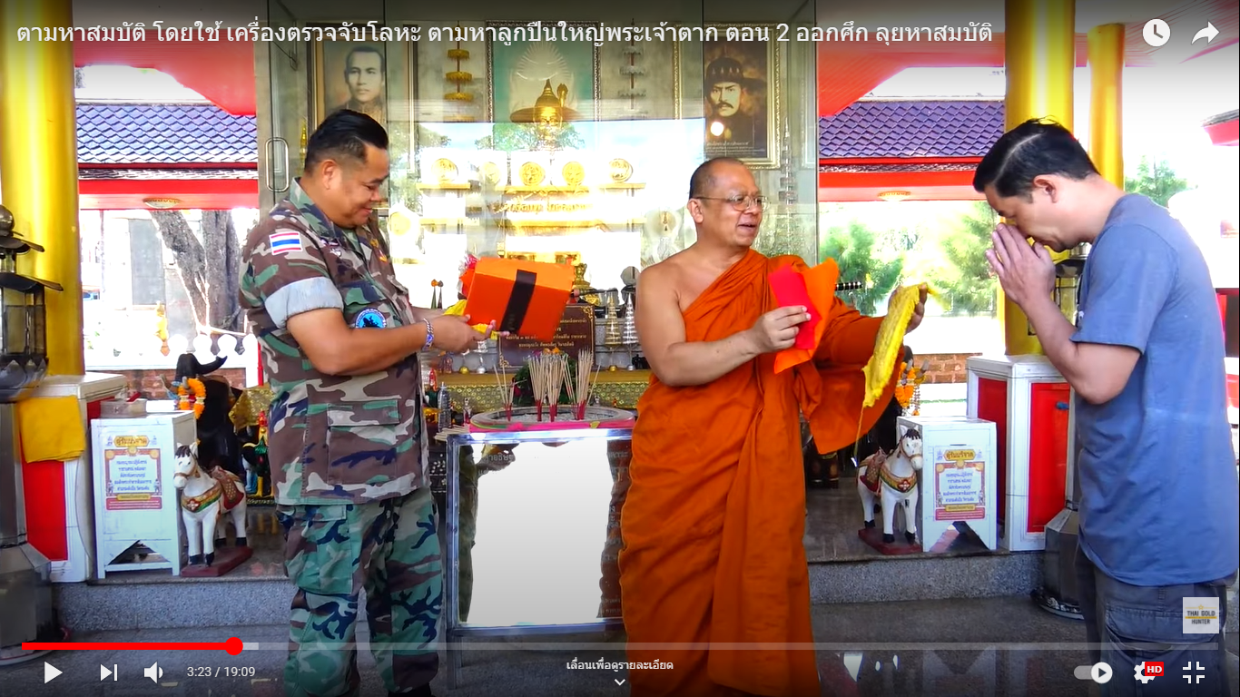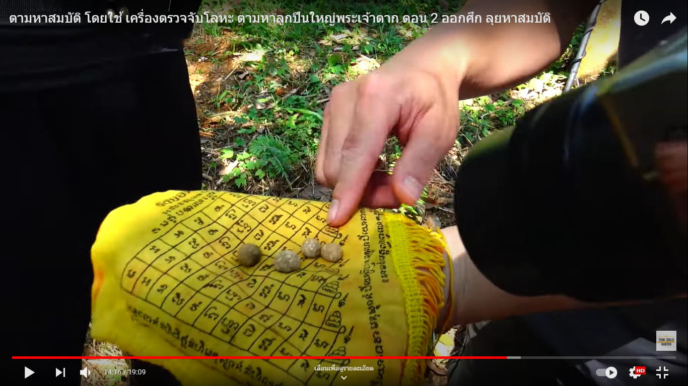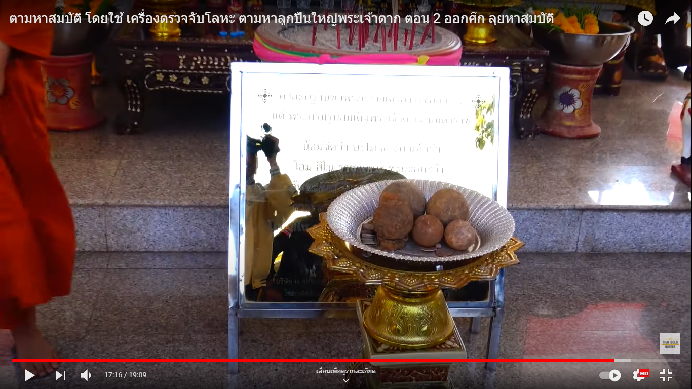 ทางทีมงานได้ความอนุเคราะห์จากเจ้าอาวาสวัดกองดินให้นำลูกปืนใหญ่ที่เจอขึ้นมาเมื่อครั้งก่อน ให้นักล่าสมบัติได้ลองใช้เครื่องตรวจจับโลหะตรวจจับ เพื่อฟังเสียงและดูค่าโลหะ ก่อนที่ลงมือตามหาจริง