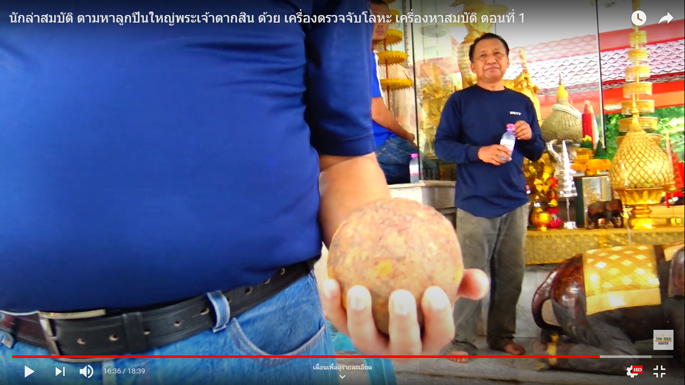 สุดท้ายทางเจ้าอาวาสได้พามาดูลูกพื้นใหญ่พระเจ้าตากสินที่ขุดค้นพบ ทางทีมงานจึงได้ขอความกรุณาท่านเจ้าอาวาส นำลูกปืนใหญ่มาลองกับเครื่องตรวจจับโลหะ พบว่าลูกปืนใหญ่ไม่ใช่เหล็กล้วนอย่างลูกเปตอง ที่เราคิดกัน แต่มันเหมือนเหล็กผสมกับดินโคลน ทางทีมงานรู้เลย ไม่หมูละงานนี้!!!